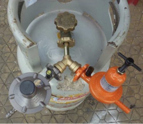 – Nối 2 van gas vào một bình gas tết kiệm được không gian.